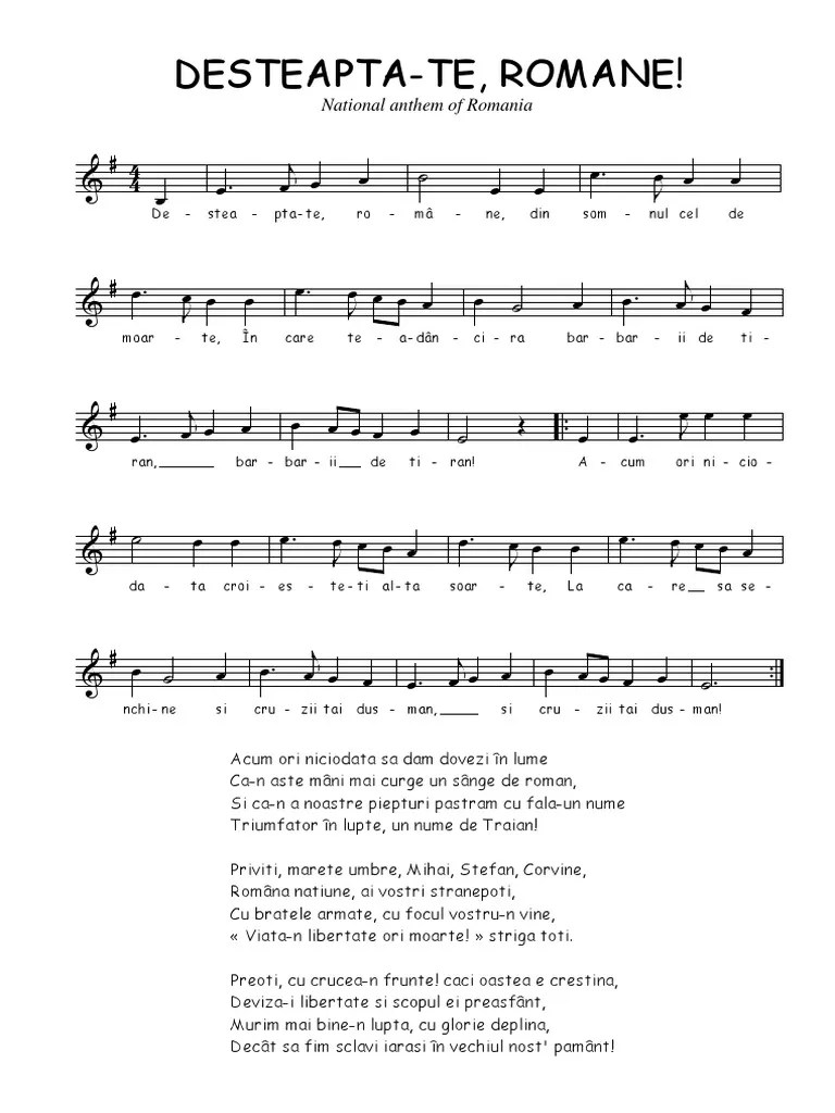 ( aussprache) ist seit 1989 die nationalhymne rumäniens. Ist seit 1989 die nationalhymne rumäniens. Notenblatt, notenblatt auf wikimedia commons. Ebenfalls die nationalhymne der republik moldau, welche jedoch . Notenblatt, notenblatt auf wikimedia commons.